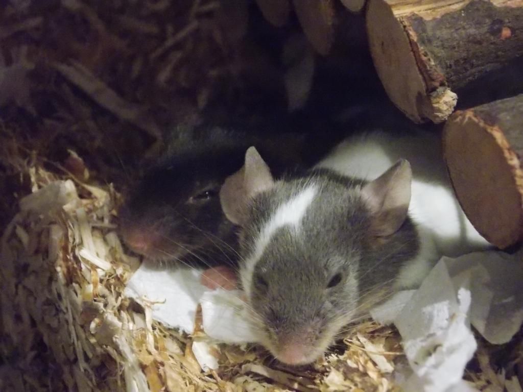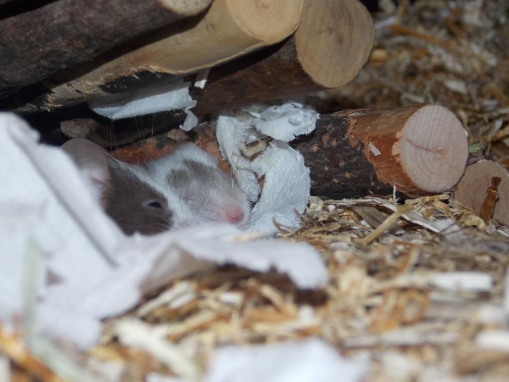 Die allererste Maus war meine süße Felizitas. Leider kam sie mit den extra für sie besorgten Mäusen bzw genauer mit einer von ihnen überhaupt nicht klar. Es kam immer mehr zu Kämpfen und am Ende gab es die schwere Entscheidung Feli in gute Hände abzugeben. Feli war speziell, da sie eine Fundmaus war und wir über sie gar nichts wussten. Wir sahen nur das sie Albino ist und die Vermutung auf Futtermaus bzw. Labormaus lag sehr nahe. Bei dem Verhalten das sie teils an den Tag legte vermuteten wir das sie keine Sozialkompetenz mehr hatte. Entweder verlernt durch zu kleinen Käfig im Labor oder ohne Rücksicht als Futtermaus weggenommen.Zwar besserte sich dies zusehends aber es gab immer wieder kleine Aussetzer. Aber mittlerweile kann ich superstolz von meiner kleinen erzählen. Sie ist in einer neuen Gruppe und mit den süßen kommt sie wunderbar aus. Hat sie sogar weitestgehends adoptiert. Bisher läuft bei ihr auch alles prima keine großen Ausraster, alles scheint besser zu laufen. Ich drücke ihr fest die Daumen das es so bleibt.